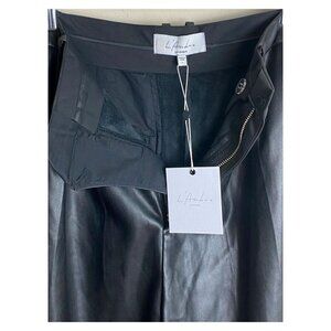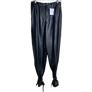 L'Academie / REVOLVE NWT $188 Gather Ankle Pant Black Faux Leather Women's Sz L