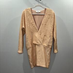 L'Academie REVOLVE Sequin Dress- Peach Sequin Long Sleeve Mini Cocktail Dress