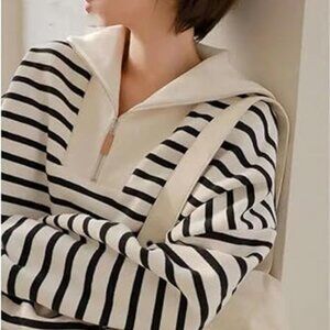 L'Academie Stripe Pattern Turtleneck Pullover Zipper Knitted Sweater Size Medium