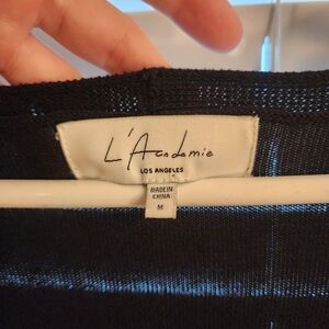 Pre-loved L'Academie maxi sweater dress. Size Medium with some stretch. Color is black. Deep V neck. Long sleeves. Thinner material that would probably be best with a slip underneath. Material is soft.