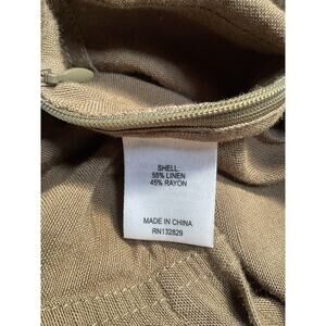 L'Academie 'The Chrisa' Green Linen Crop Blouse Size M: hidden side zipper closure, breast flap pockets, lightweight linen fabric.