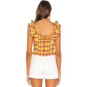 L'Academie Womens Size Small The Laci Top Cropped Ruffle In Yellow Plaid