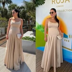 L'Academie by Marianna | Laure Maxi Dress Light Beige Cotton Drop Waist XXS