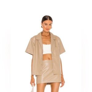 L’Academie by Revolve Clothing Tan Short Sleeve Leather Shirt Kelly Blouse
