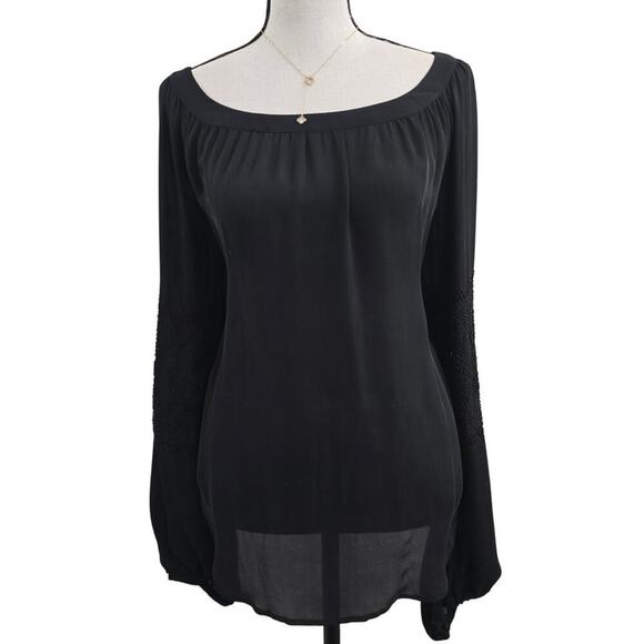 L'Agence 100% Silk Blouse Women’s Sz 6 Black Long Sleeve Sequin Elegance Luxury