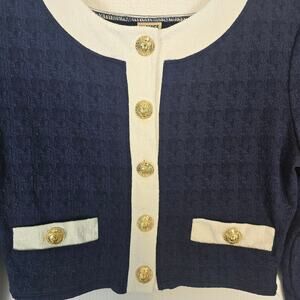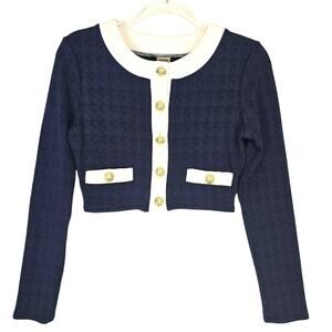 L'Agence Adaline Cardigan Cover-Up Marine Blue White Gold Buttons Small NEW