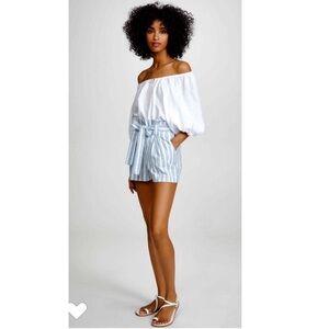 L’Agence Alex Paper Bag Shorts in Blue/White.