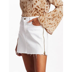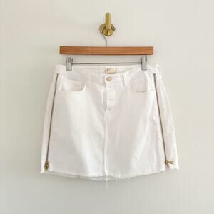 L'Agence Allegra Side Zipper Denim Raw Hem Mini Skirt White 30