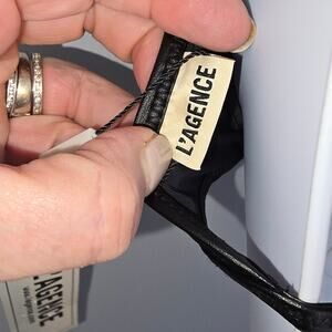 L'Agence Annabelle Faux Leather Bikini Top Black Triangle Tie Closure Small NEW