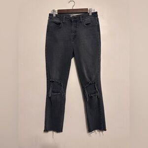 L’Agence Audrina Straight High Rise Jeans Vintage Black Worn Distressed 28