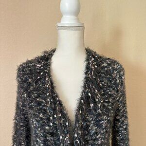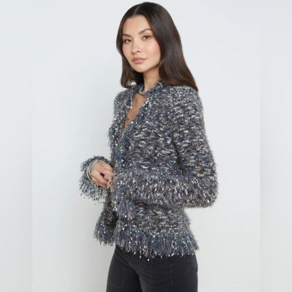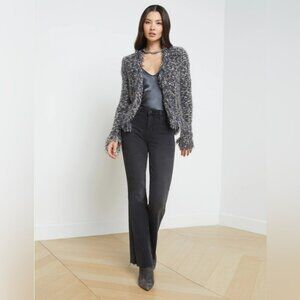 L’Agence Azure Blazer Grey Multi XS Fuzzy Fringe Open Cardigan Buttons Luxury