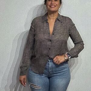 L’Agence Black Striped Silk Button Down Blouse Sz S NWT