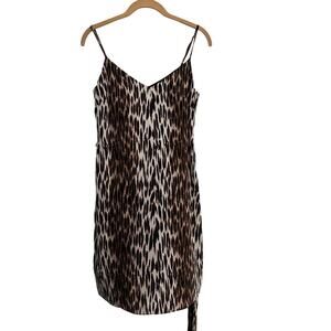 L’Agence Brown Leopard Print Jodie Sauvage Silk Bias Cut Slip Dress Size Small