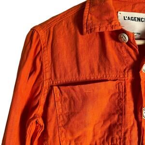 L’Agence Celine Orange Linen Button Front Utility Trucker Jacket Size XS