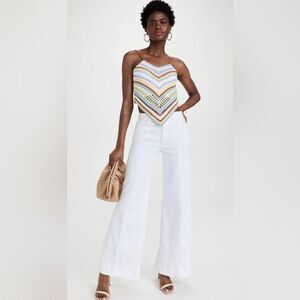 A beautiful pair of wide leg jeans with a retro sailor style. New. Good stretch. Waist 15.5, rise 12, inseam tall 33”. Questions? Leave a comment below!
