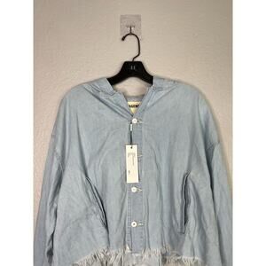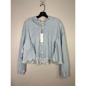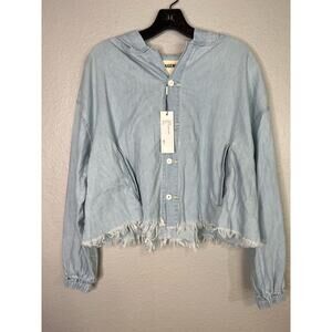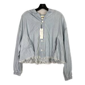Keywords: New with tag, no flaw, L'Agence, crop swing trinity jacket, blue, size small, lightweight, hooded, long sleeve.