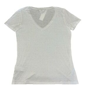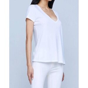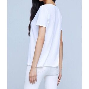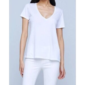L'Agence Daija Tee Women's XS White Deep V Neck Relaxed Sheer NEW *pinhole