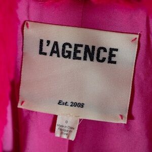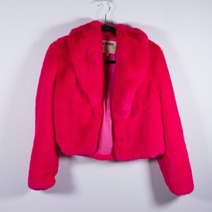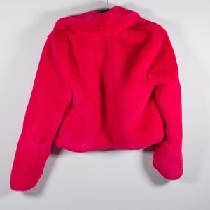 L'Agence Davy Crop Faux Vegan Fur Open Front Cropped Jacket Coat Hot Fuchsia 0