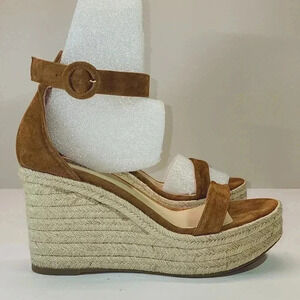 L'AGENCE's Elysee espadrille sandals boast a platform design and soft suede upper. This style is finished with a round buckle closure at the ankle.