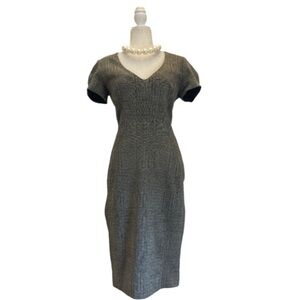 L'Agence Gray Black Plaid Fitted Short Sleeve w/Sweetheart Neckline Dress