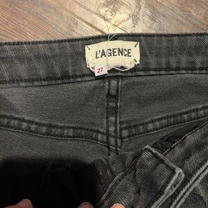 L’Agence Grey Audrina Destructed-Knee Crop Straight-Leg Jeans 27