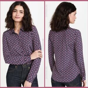 L'Agence - Harmony printed stretch chain motiff blue pink blouse - Size Small