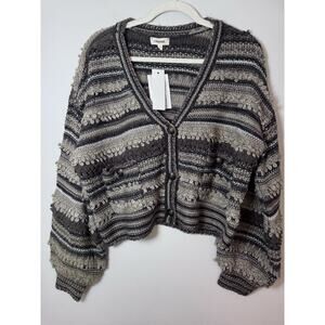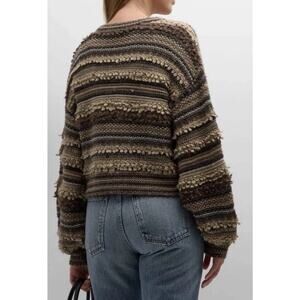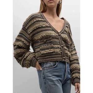 L'Agence Harriet Blouson Sleeve Wool Blend Cardigan Brown Mulit Stripe M $360