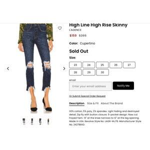 L’Agence High Line Skinny High Rise Distressed Jeans 32 Cupertino Wash