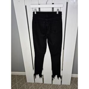 Good Condition, L'Agence High Line Skinny High Rise Saturated Black Distruct, Distressed and Raw Hem, Size 24