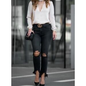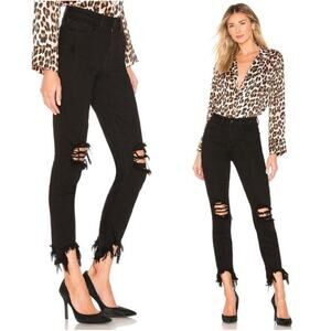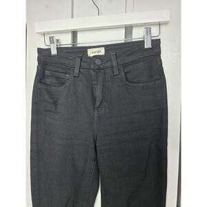 L'Agence High Line Skinny High Rise Saturated Black Distruct Distressed Jeans 24