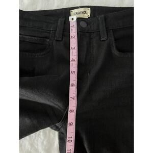 L'Agence High Line Skinny High Rise Saturated Black Distruct Distressed Jeans 24