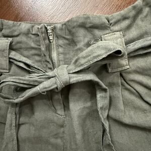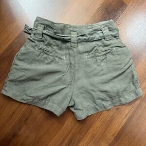 L’Agence Hillary Linen Paperbag Front Tie Belted Shorts Green Boho Casual Sz 24