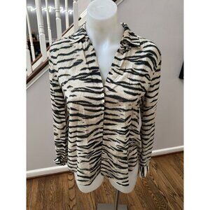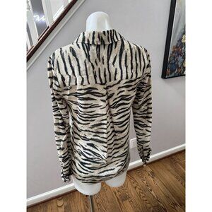L'agence Holly Tiger Print Satin Button Down Shirt Blouse Coconut Husk Size XXS