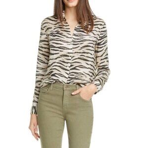 L'Agence Holly Tiger Print Satin Button Down Shirt Blouse Coconut Husk Size XXS
