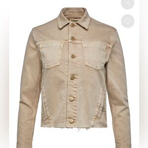 Stretch denim jacket in the biscuit color way. Patch pockets, silver button detailing and frayed edges. Worn once and professionally cleaned. Tiny mark on the back )bottom left) that is not visible when the jacket is worn. Excellent condition.