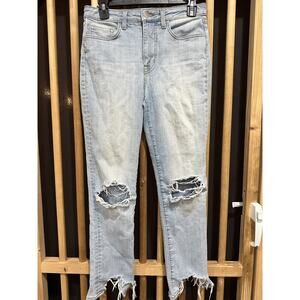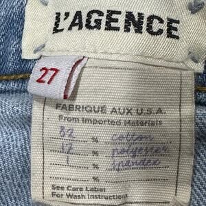 L'Agence Jeans Size 27 Light Blue Wash Distressed Ripped High Rise Raw Hem Denim