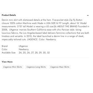 kw: NWT, trendy, designer, revolve, saks, holes, destroyed, indigo, short, A-line, LAGENCE, l agence, anine bing, reformation, redone, y2k style