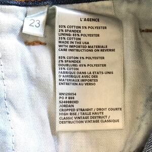 L’Agence Jordan Cropped Straight High Rise Denim Jeans Size 23 Vintage Destruct Destroyed Distressed Crop Premium Denim