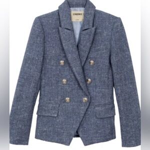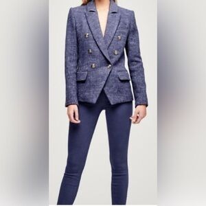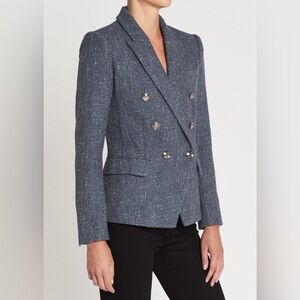 L’Agence Kenzie double breasted blazer tweed jacket blue melange