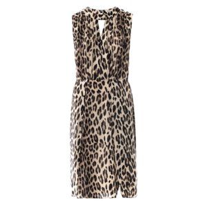 L'Agence Leopard Print Mini Dress Womens 2 Sleeveless Brown Black Crew Neck Silk