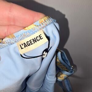 L’Agence Lisa Plunge One Piece Swimsuit Sky Blue Multi Chain S NWT Sold Out