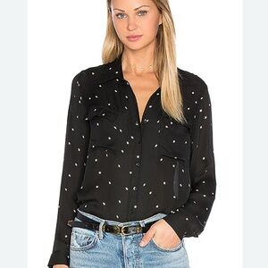 L’agence Margaret 100% Silk Blouse Longsleeve Button-Front Collared Star Black & Ivory (Like New)