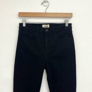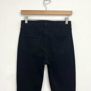 “Our signature high-rise skinny jean crafted from premium, luxurious stretch denim in true, saturated black. Tapered leg hugs from hip to ankle, while the contoured waistband defines and slims the natural waist. High-recovery fabric holds its shape, smoothing the silhouette without sacrificing comfort.”