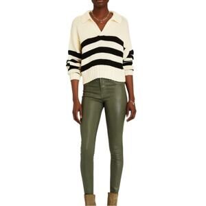 Premium L’Agence Margot high-rise skinny jeans in a coated army-green finish. These sculpting jeans offer a sleek, leather-look sheen with comfortable stretch—perfect for elevated casual and night-out looks.