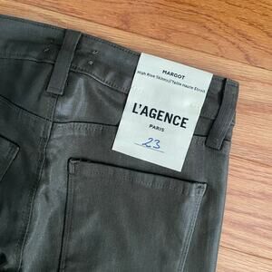 L’Agence Margot High Rise Skinny Jeans Womens 23 Army Green Coated Stretch Denim