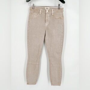 Our signature high-rise skinny jean crafted from premium, luxurious stretch denim in an oatmeal beige. Tapered leg hugs from hip to ankle, while the contoured waistband defines and slims the natural waist. High-recovery fabric holds its shape, smoothing the silhouette without sacrificing comfort.