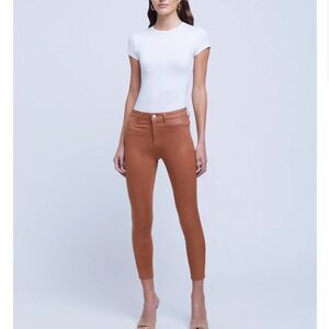 L'Agence Margot Skinny High-Rise Stretchy Cropped Jeans in Coated Java Size 32