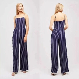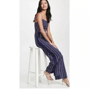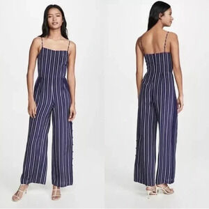 L'Agence NWT Finley Jumpsuit with Side Buttons Size 2 in Navy/White Stripes Silk