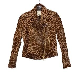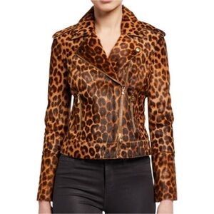 L'Agence Natural Leopard Print Leather Biker Moto Jacket Size XS NWT