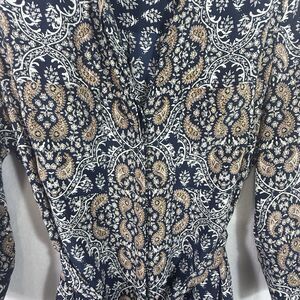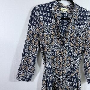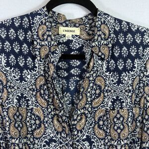 L'Agence Navy 100% Silk Paisley Tie Belt Button Front Shirt Stella Dress Size S